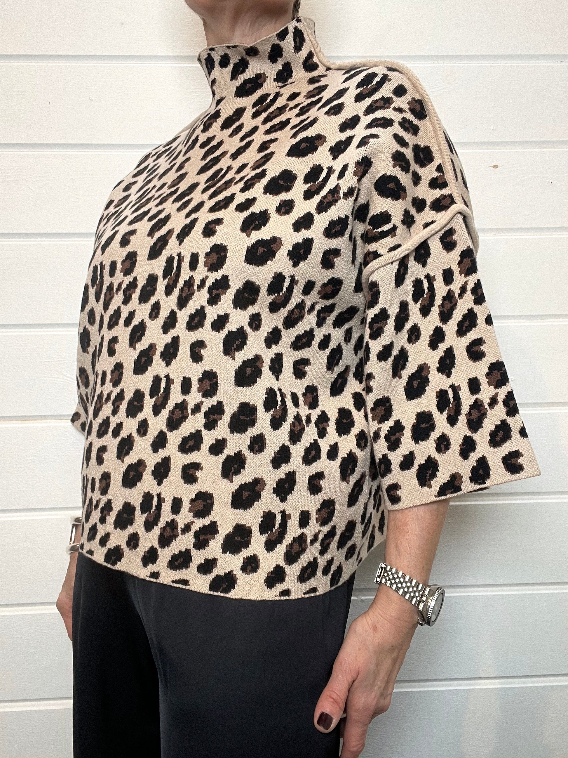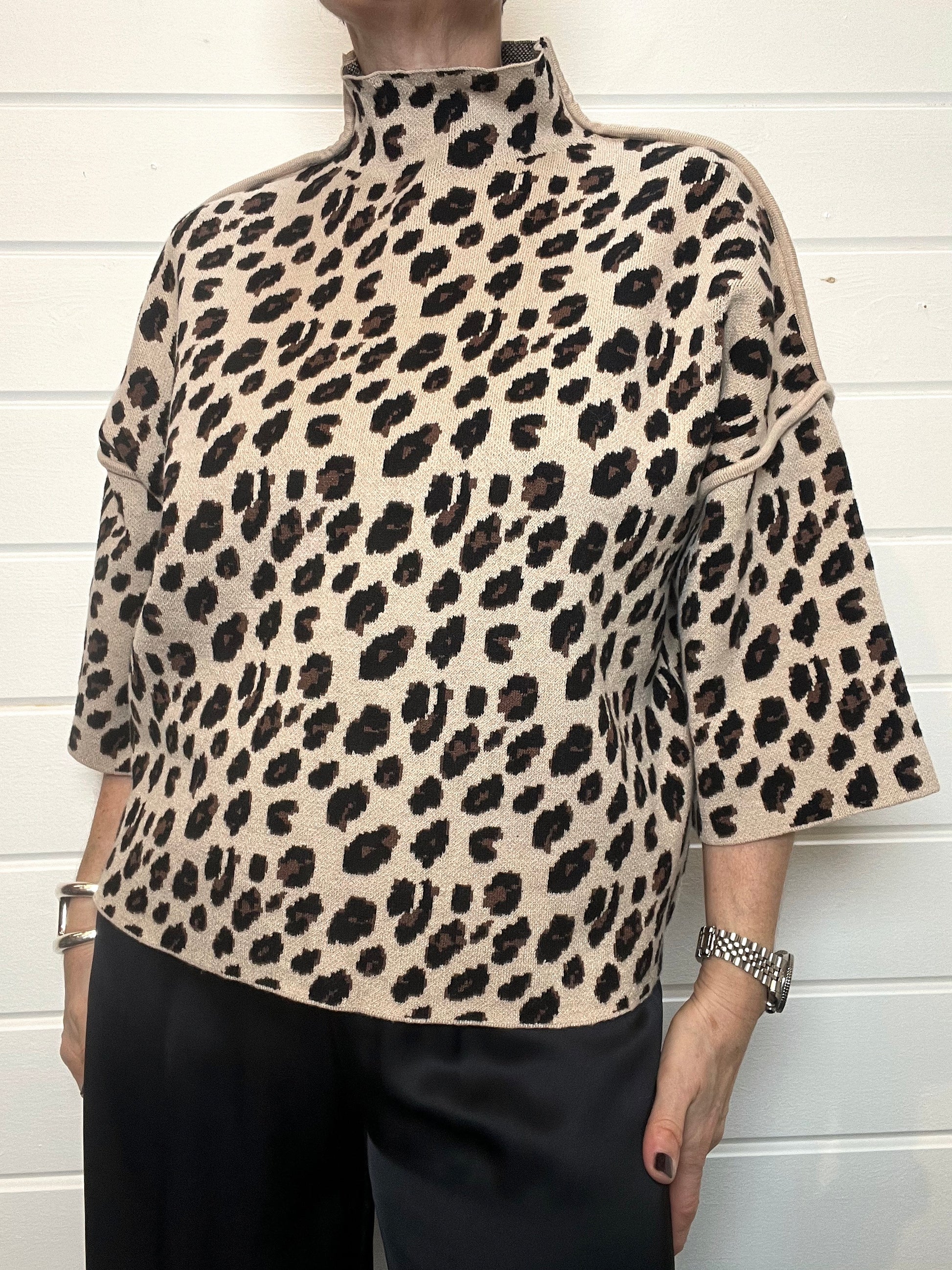 Pull col montant en maille compacte motif léopard en vrai jacquard ( pas de fils libre sur l'envers)